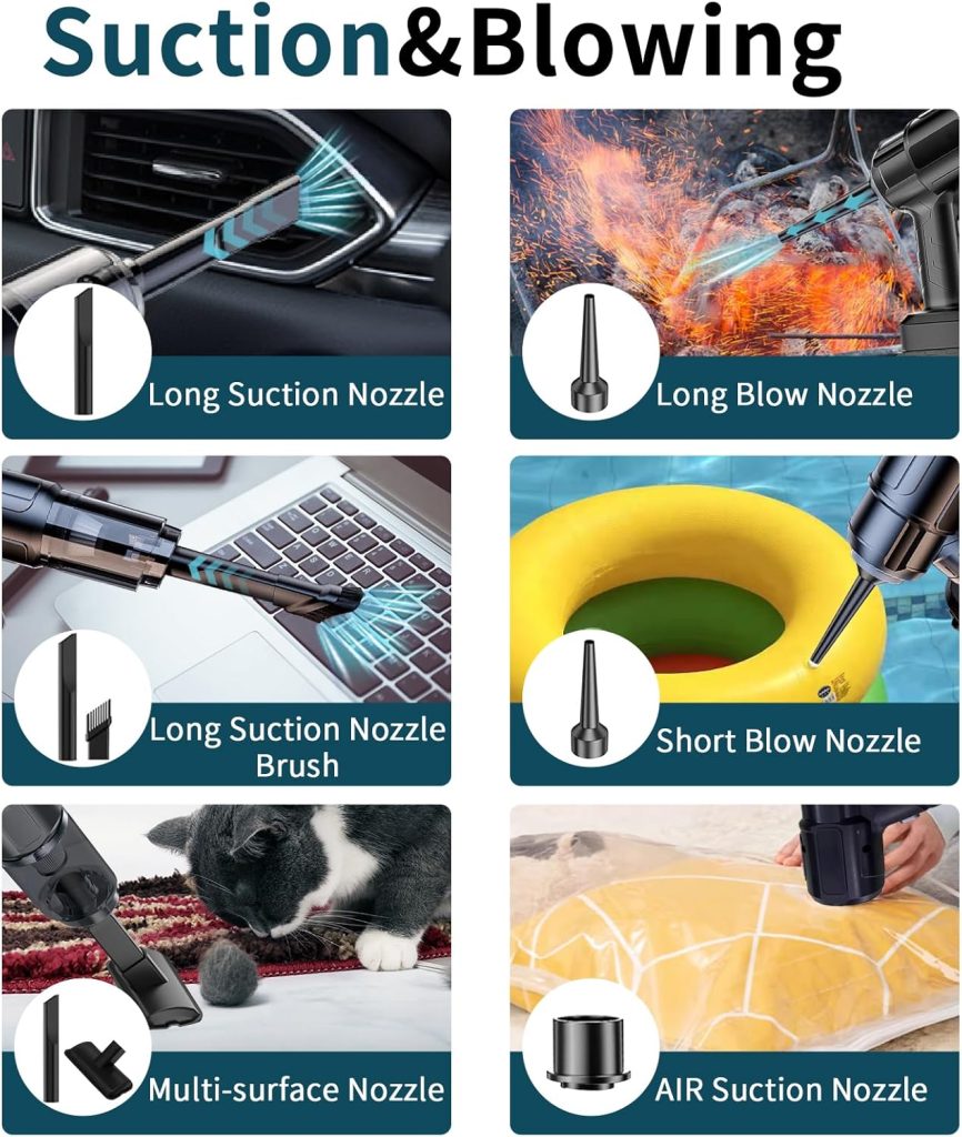 ✅ 【Vacuum + Blower 2-in-1】 – Dual functionality: suck up debris or blow away dust from keyboards and vents!